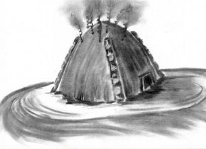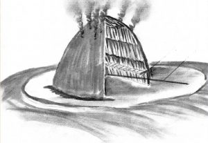 Die Rauhdecke besteht aus Stroh. Es soll das Absickern der Meilererde (Lösch) verhindern.